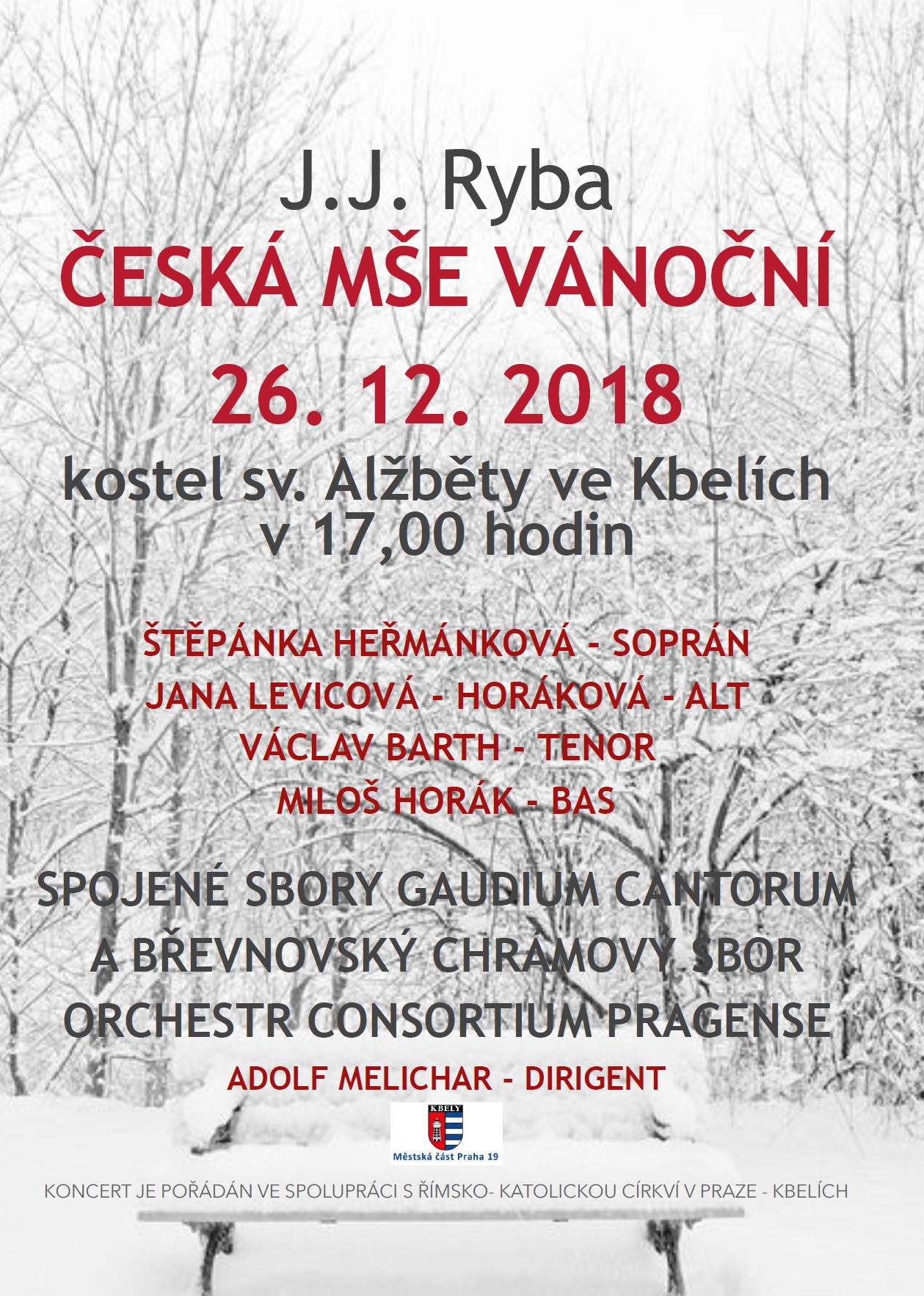 Praha 9 - Kbely26. 12. 2018Spojené sbory Gaudium Cantorum a Břevnovský chrámový sbordirigent Pavel MelicharOrchestr Consortium Pragense
